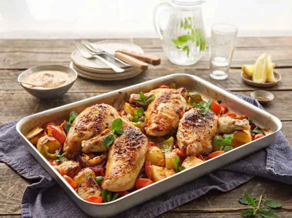 - 4 chicken breasts, bone in and skin on