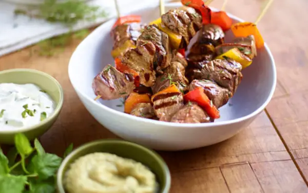 Lamb kebabs are ideal as they are delicious cooked either on the barbecue or under the grill and best of all, they can be eaten with our hands!