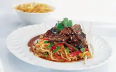 Copy TextCombine the marinade ingredients in a bowl. Add in the lamb strips and leave to marinate for 10 minutes while you prepare the vegetables and noodles.