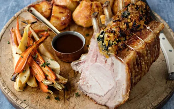 Elevate your dinner with a succulent Rack of Pork, beautifully stuffed with spinach and apricots for a delightful blend of flavours!